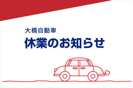 本年も大橋自動車をご愛顧くださいまして、誠にありがとうございました。 大橋自動車では誠に勝手ながら、年末年始の下記の期間を冬期休業とさせていただきます。 【冬期休業】2025/12/28(日)~2026/01/05(月) […]